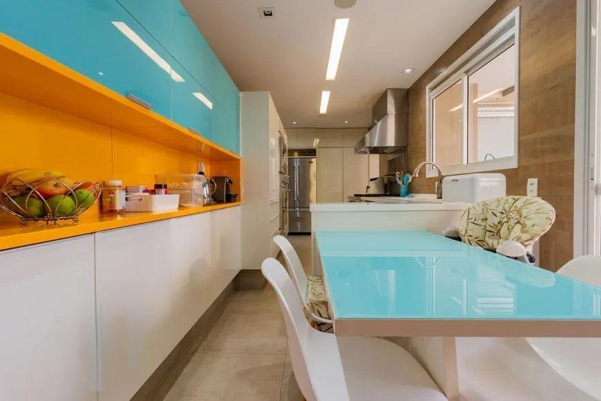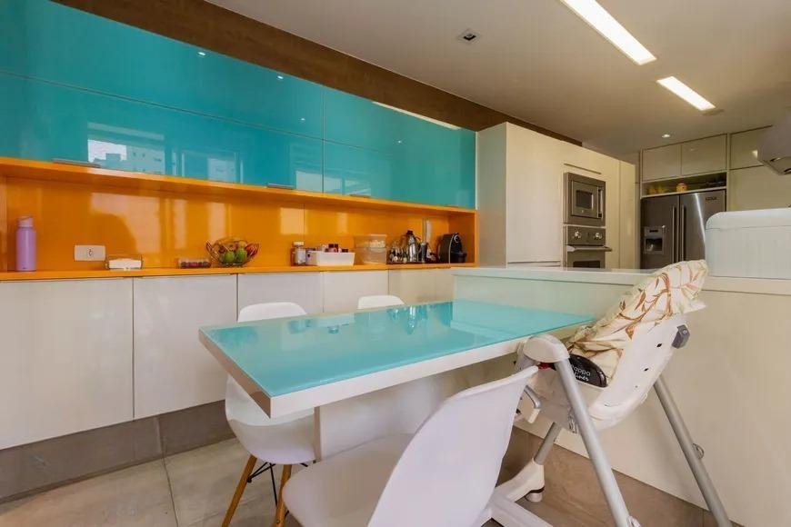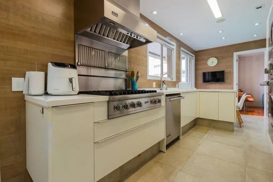 A cozinha, moderna e funcional, está integrada à área de serviço e ao depósito de empregada. A sacada com churrasqueira é um convite para momentos de descontração e lazer.