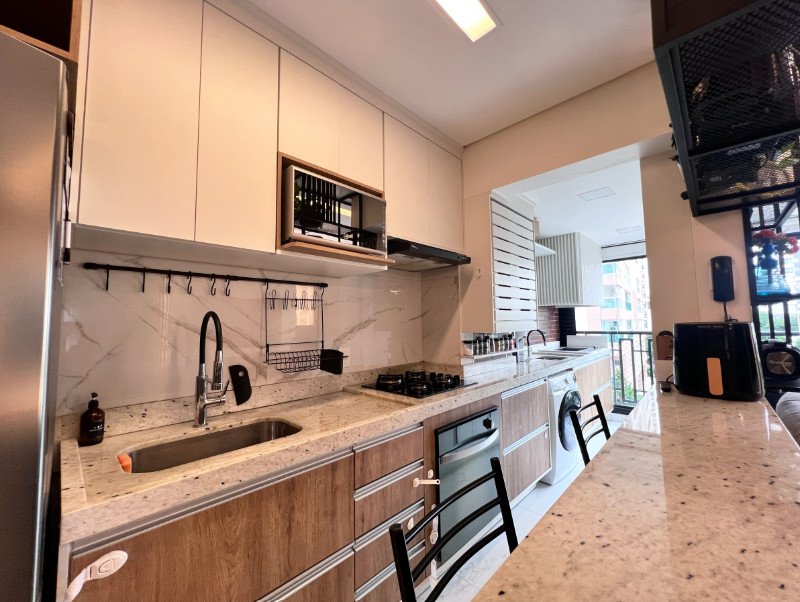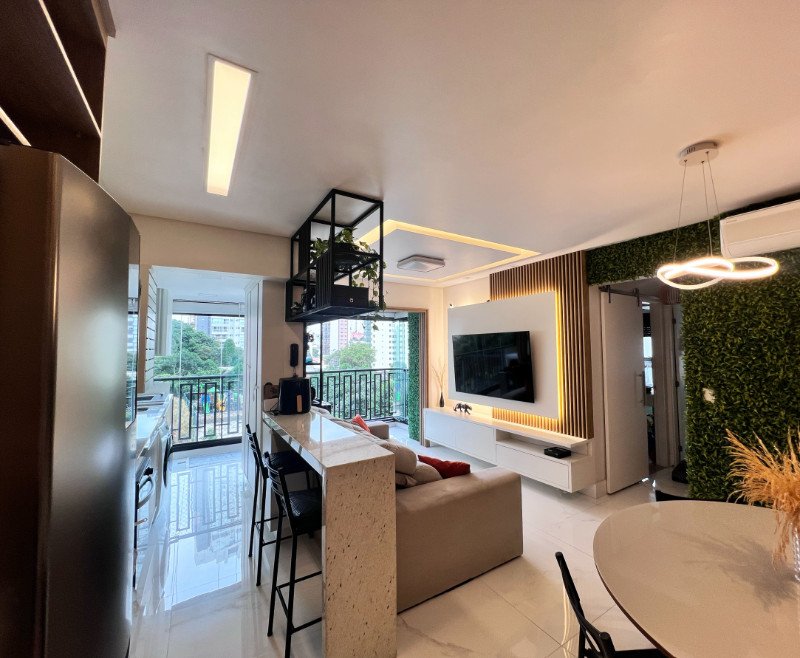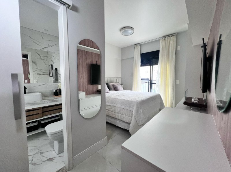 Com uma área total e privativa de 69m², este apartamento semimobiliado é a definição de otimização de espaço e design inteligente. Desfrute de 2 suítes elegantemente projetadas para o seu descanso, além de 2 banheiros e 1 lavabo, garantindo privacidade e conforto para você e seus convidados.