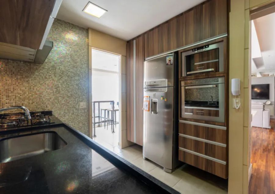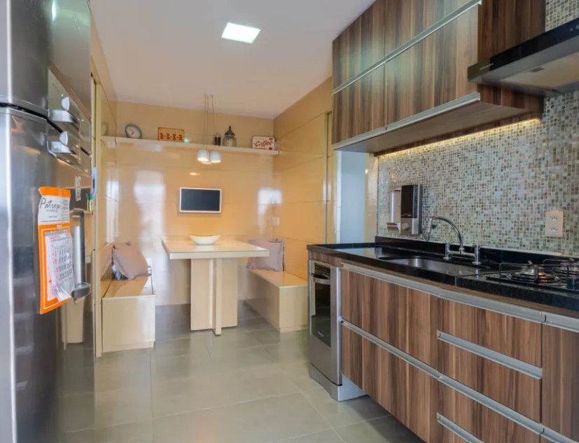 Cozinha funcional e área de serviço bem planejada