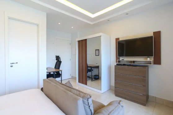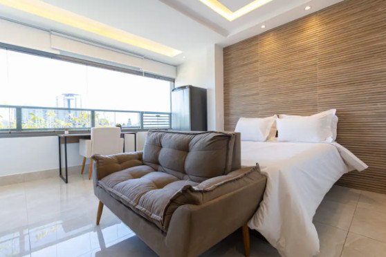 O apartamento é repleto de pequenos toques para aproveitar uma estadia curta ou longa: super internet com 300mb, cozinha equipada, enxoval completo de cama e banho e A/C. Além disso, dispomos nas áreas comuns de piscina, academia e lavanderia pay-per-use.